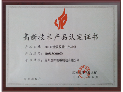 高新技术产品认定证书