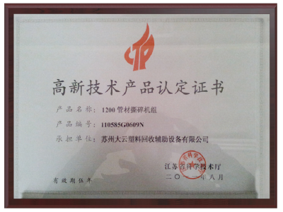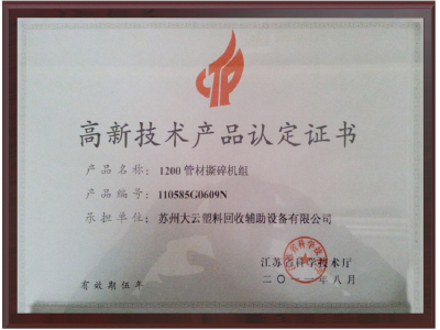 高新技术产品认定证书