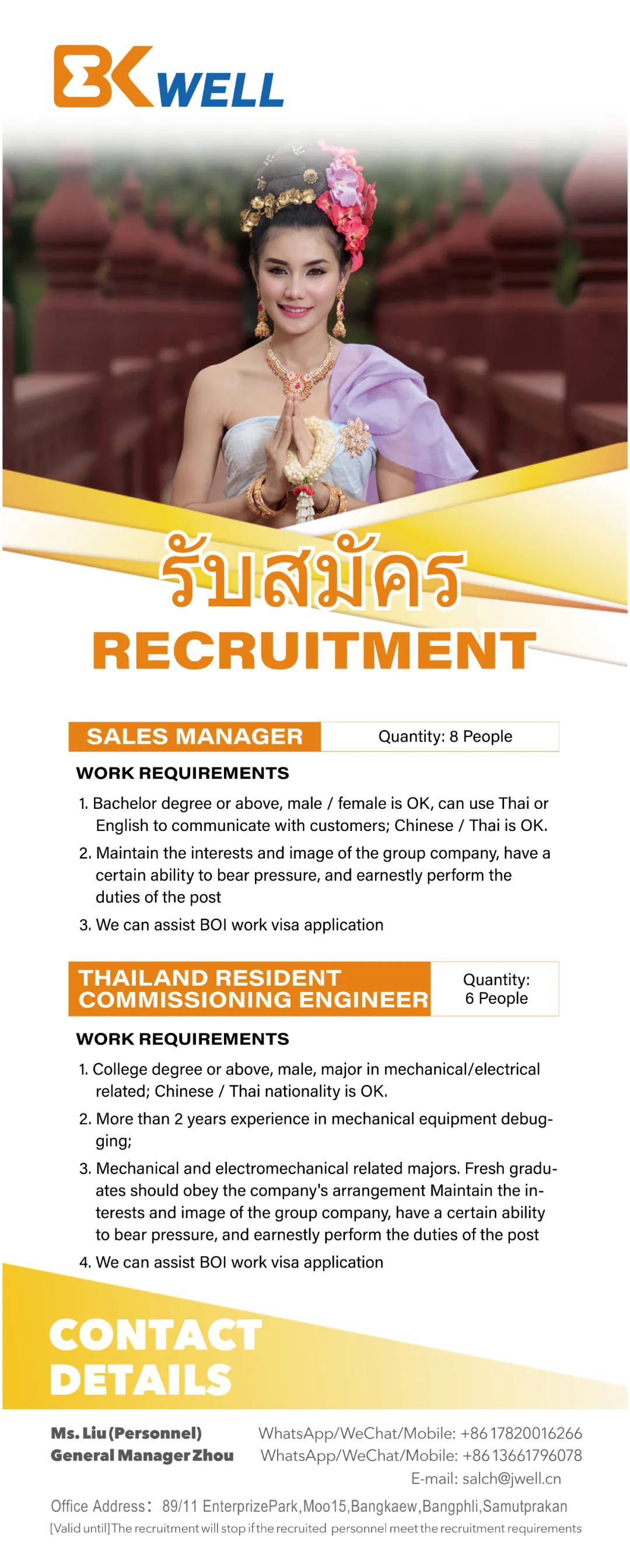 办事处地址:89/11 EnterprizePark,Moo15,Bangkaew,Bangphli,Samutprakan